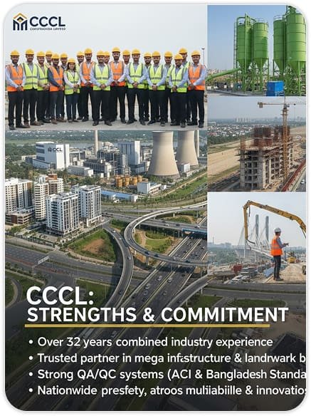 Cross Country Construction Limited (CCCL) is a leading construction and ready-mix concrete company in Bangladesh, established in 2009. CCCL specializes in onsite concrete batching plants, ready-mix concrete supply, and large-scale construction services for infrastructure, commercial, industrial, and real-estate projects.
